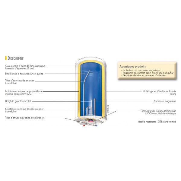 Descriptif du chauffe-eau DE DIETRICH CEB 100 litres